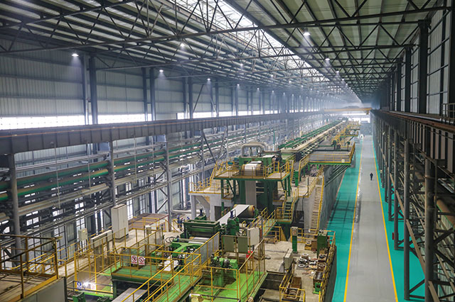 河北兆建金屬制品有限公司始建于2010年11月,注冊(cè)資金1億元人民幣,占地面積70萬平方米,總投資為25.9億元,年生產(chǎn)能力320萬噸(其中:軋硬產(chǎn)品120萬噸、鍍鋅產(chǎn)品120萬噸,彩涂產(chǎn)品80萬噸)。專業(yè)生產(chǎn)冷軋板、鍍鋅板、鍍鋁鋅板、印花板、冷覆膜板、熱覆膜板、建筑彩涂板、家電彩涂板。選用設(shè)備力求高起點(diǎn)、高水平和高質(zhì)量,打造國(guó)際一流水平的設(shè)備生產(chǎn)線,具備生產(chǎn)周期短、效率高、產(chǎn)品精度高、質(zhì)量好和能耗等優(yōu)點(diǎn)。